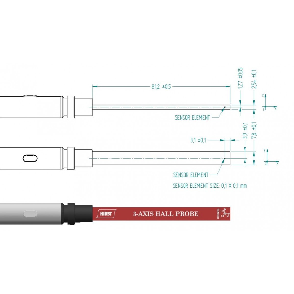 - Ultra small measurement volume with magnetic field sensitive dimensions of 0.1mm x 0.1mm x 0.01mm (z) for accurate 3-axis field measurement.